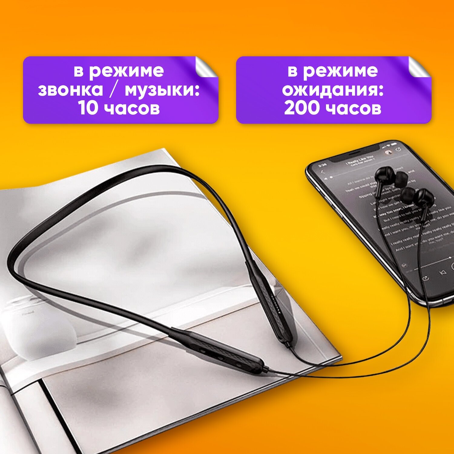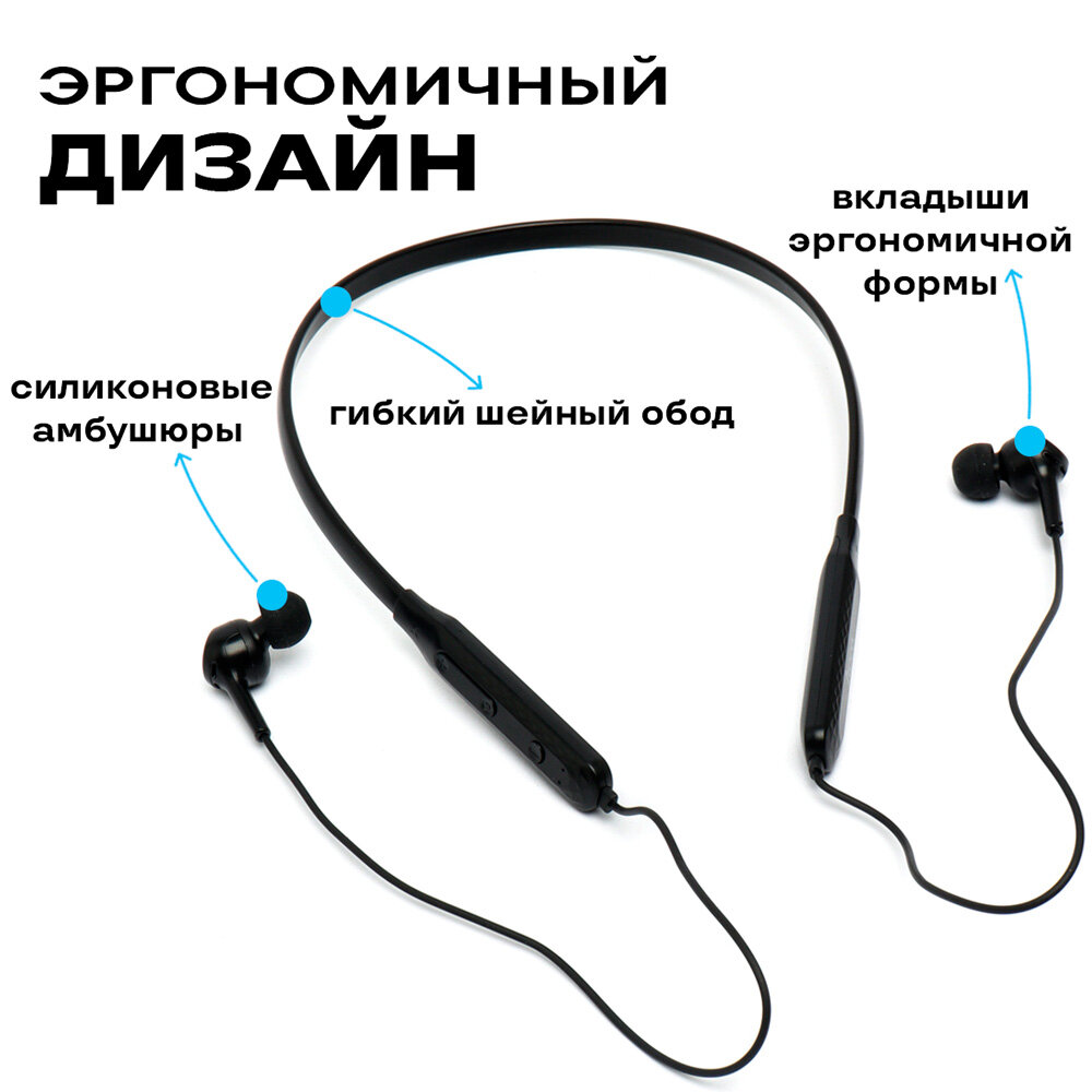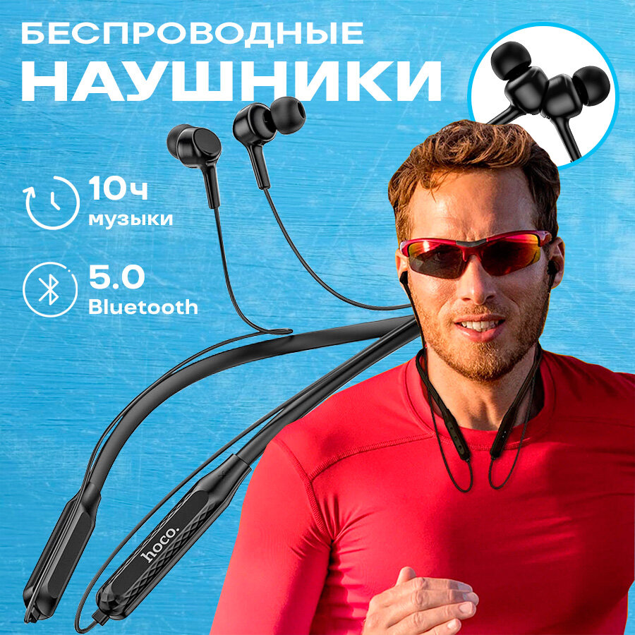 Наушники беспроводные блютуз Hoco вакуумные, с микрофоном, на шею, для бега и фитнеса, совместимы со смартфонами Айфон/Андроид, ПК, ноутбуками