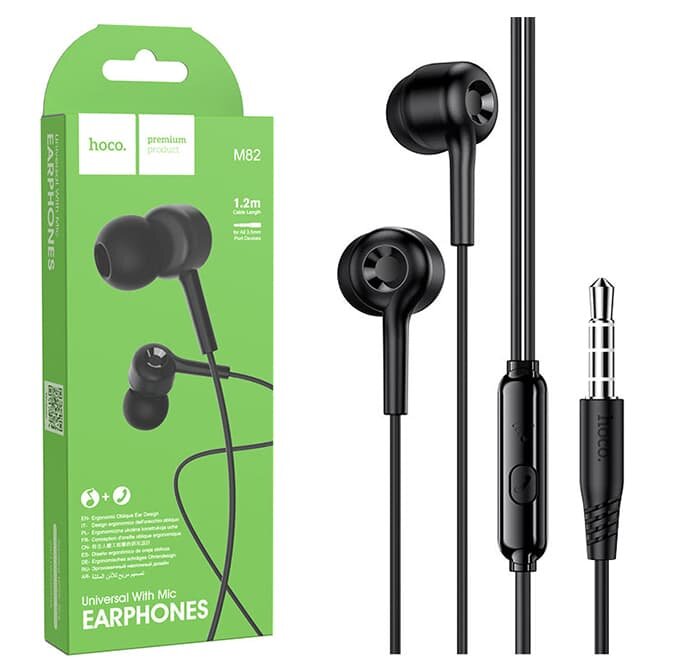 Наушники Hoco M82, проводные, вакуумные, микрофон, Jack 3.5 мм, 1.2 м, черные