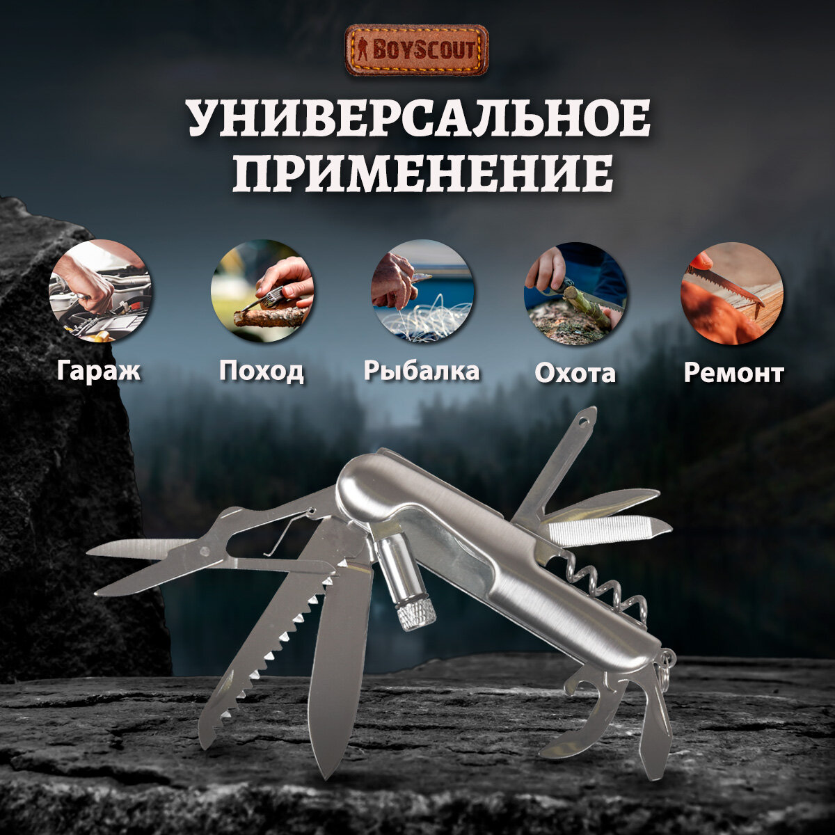 Мультиинструмент BOYSCOUT "Универсал" (нержавеющая сталь, 14 функций, со светодиодным фонариком)