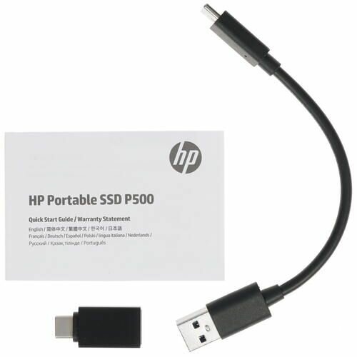 Портативный твердотельный накопитель HP P500, USB 3.1 gen.2 / USB Type-C / USB Type-A, OTG, 250 Гб, R350/W210, Черный