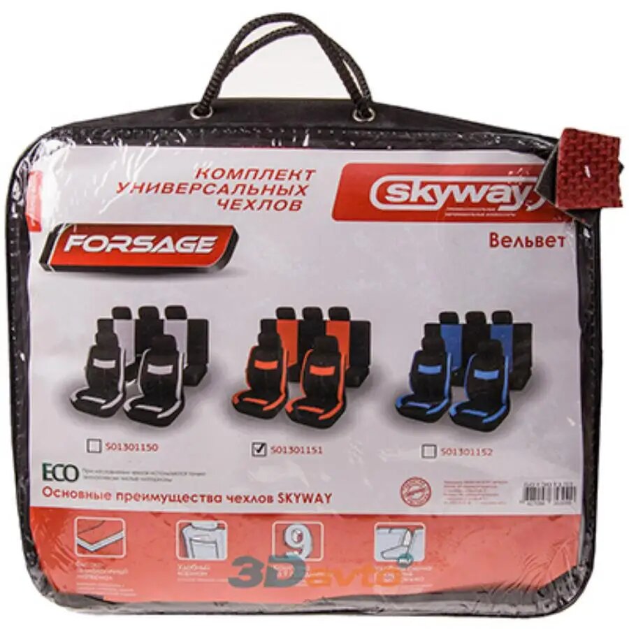 Чехлы автомобильные универсальные вельвет черный/красный "SKYWAY" Forsage (9 шт.) (арт. S01301151)