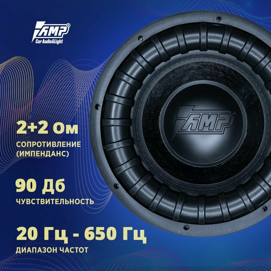 Сабвуферный динамик AMP MASS 1000 12D2 (2+2 Ом, RMS1000)