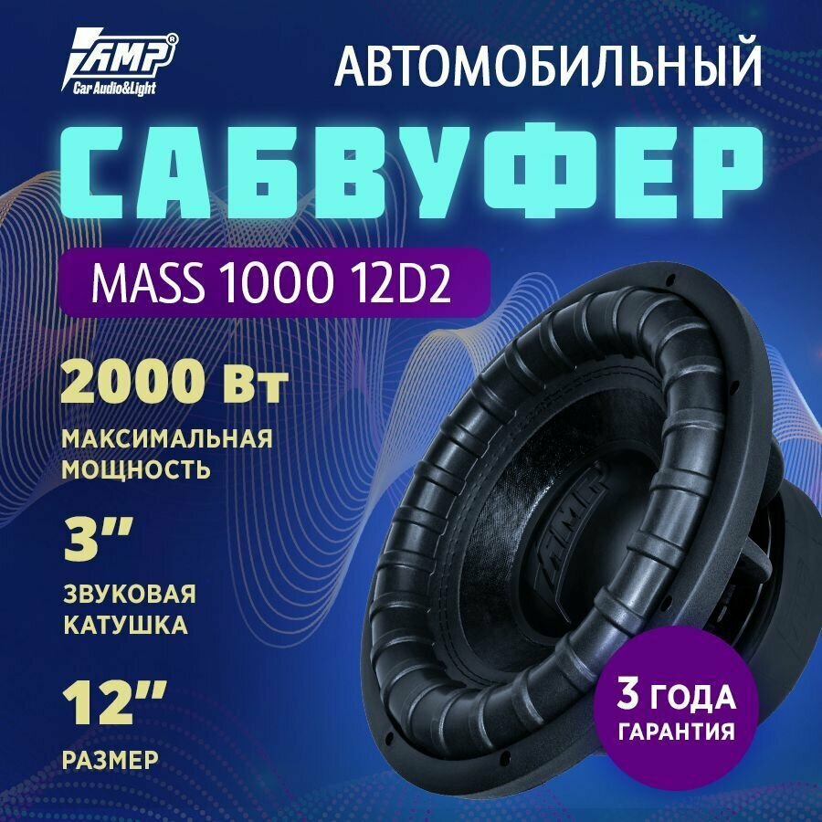 сабвуфер AMP Mass 1000 12 D2 (2+2Ом)