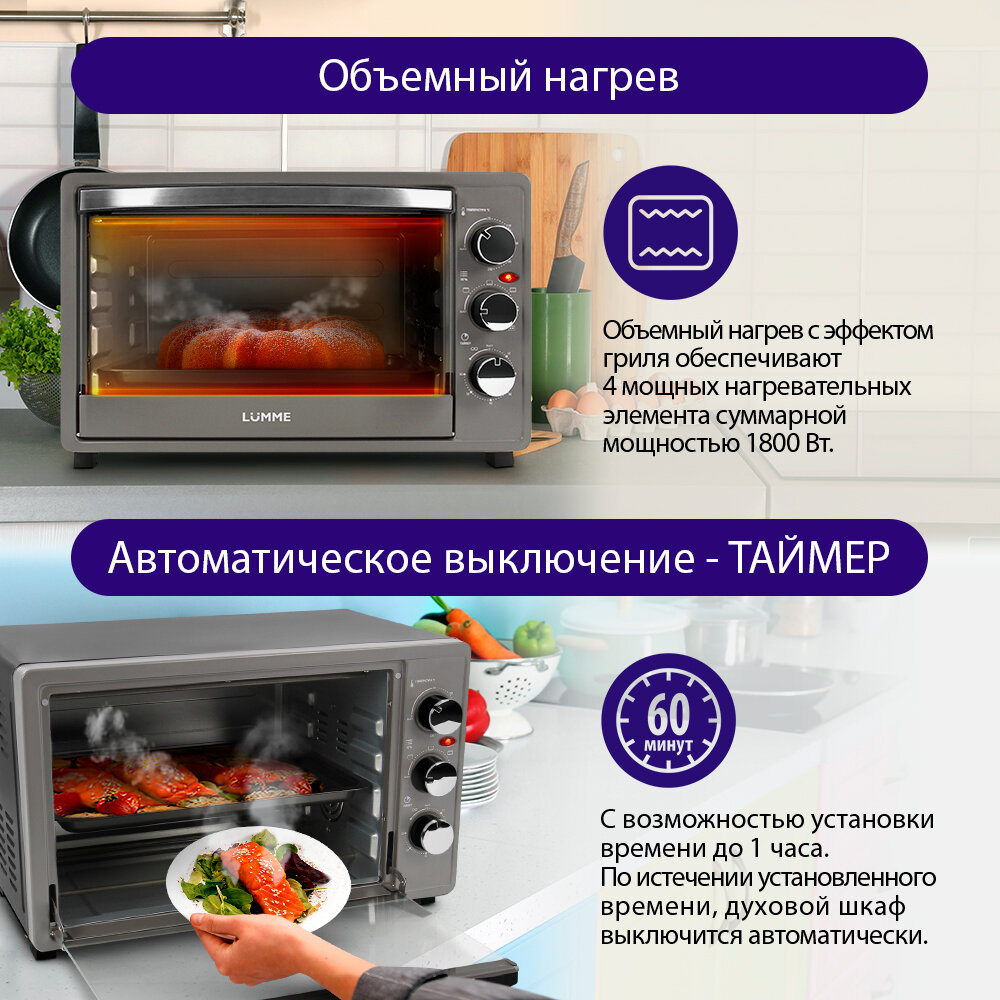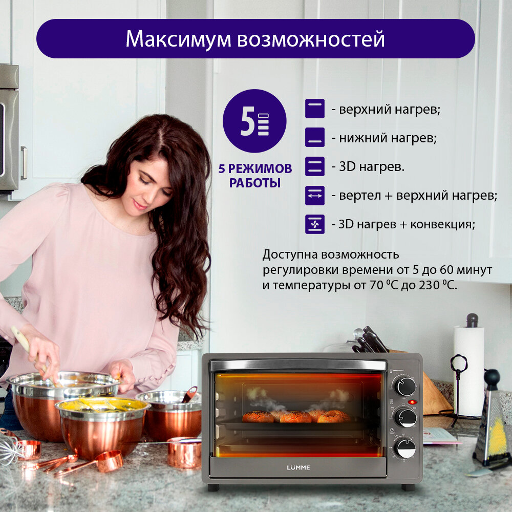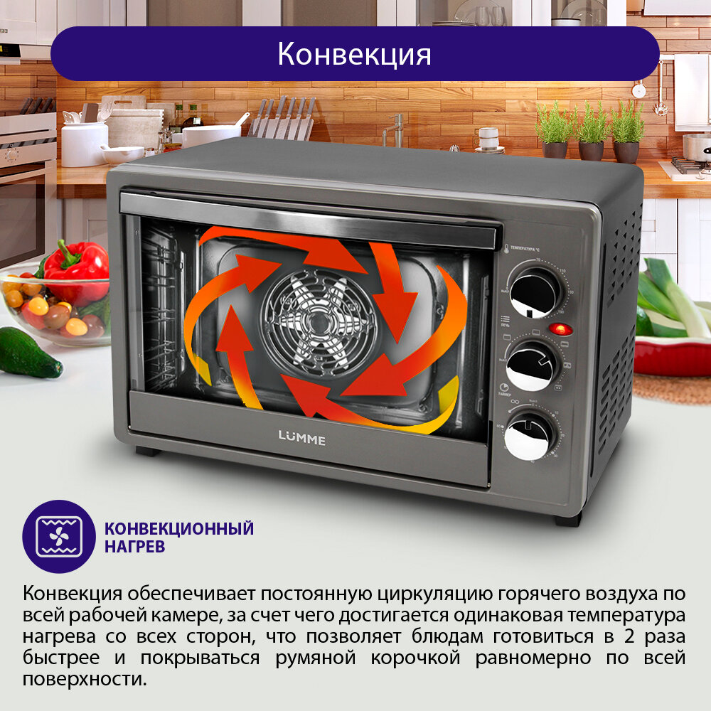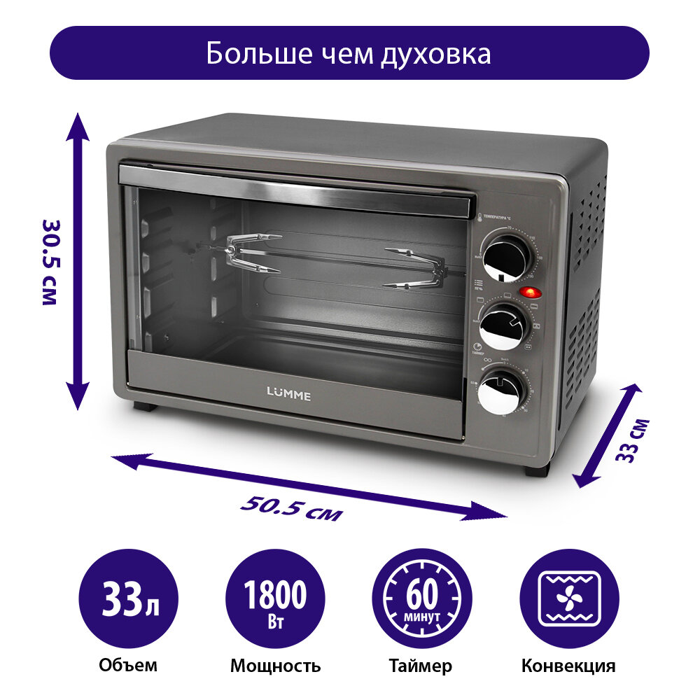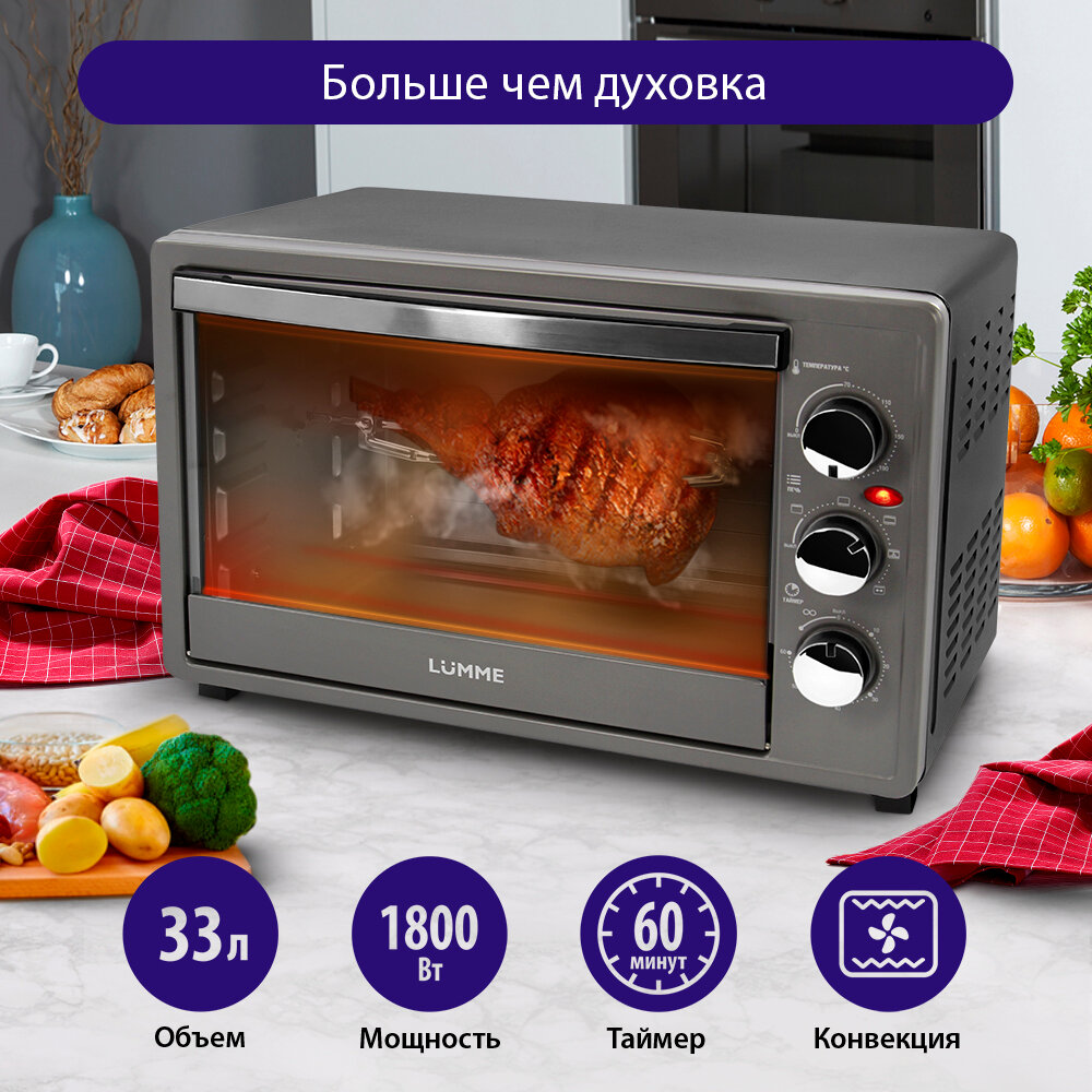 Купить LUMME LU-1710 серый жемчуг Мини-печь 33 литра (конвекция+вертел+гриль)