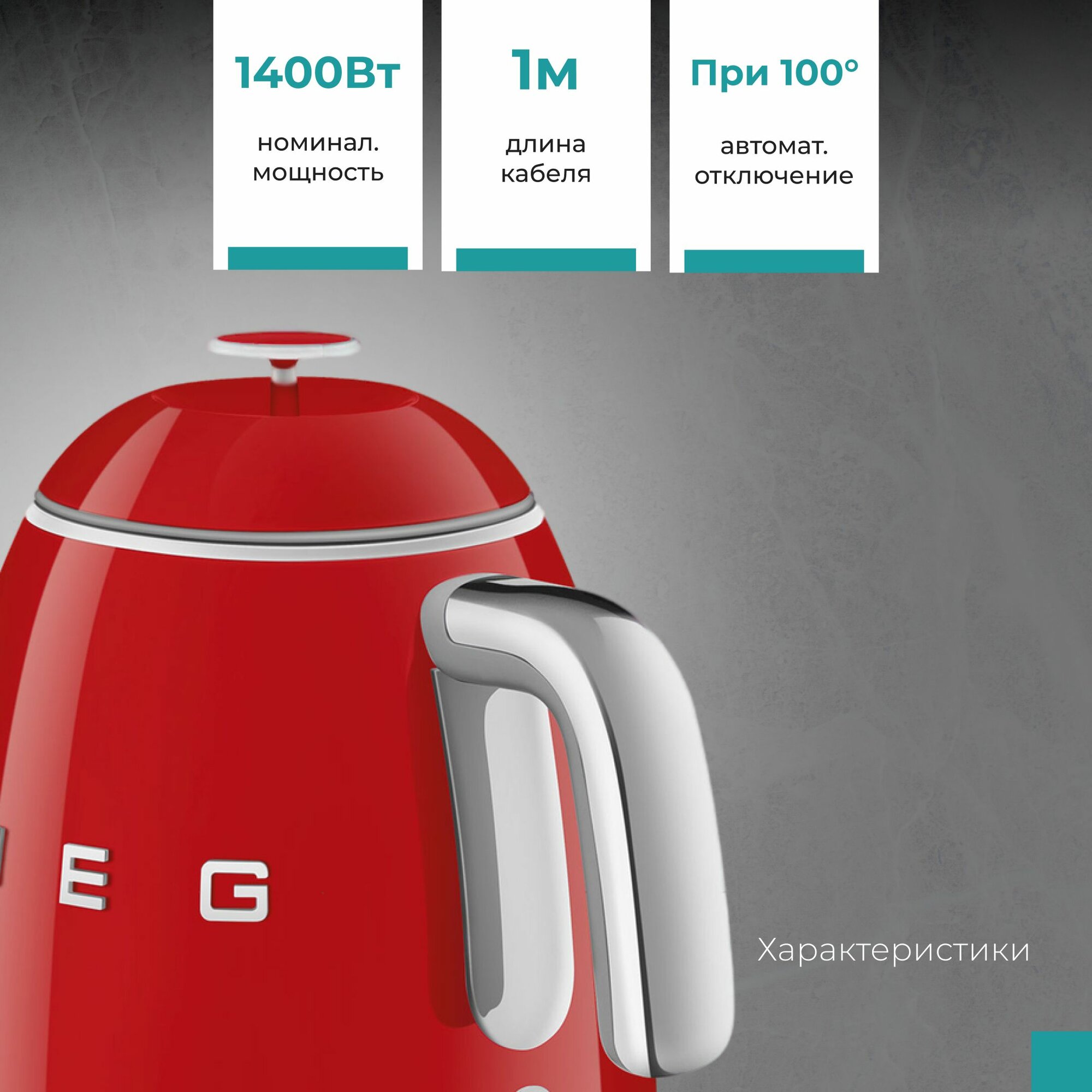 Чайник электрический мини SMEG KLF05RDEU / мощность 1400 Вт / красный
