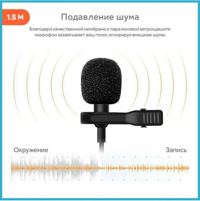 Микрофон петличный CANDC DC-C10, Lightning, 6 м, черный интересное: