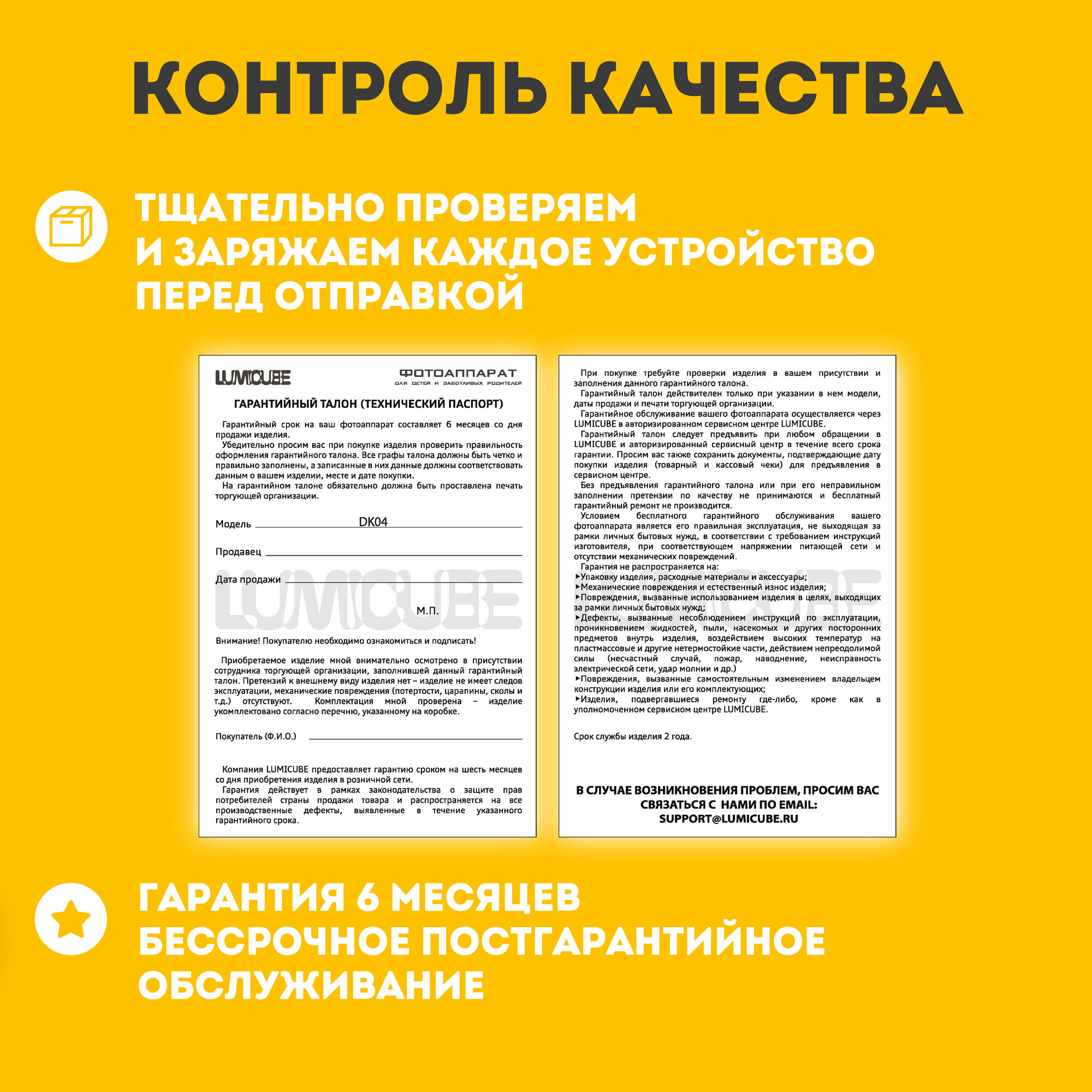 Фотоаппарат моментальной печати LUMICUBE DK04, печать снимка 50x100 мм, yellow