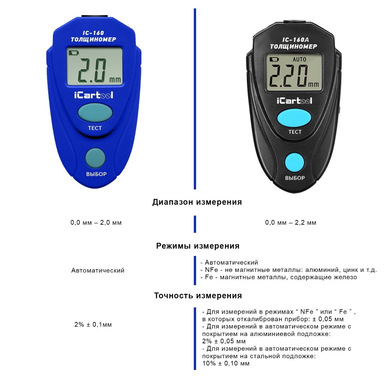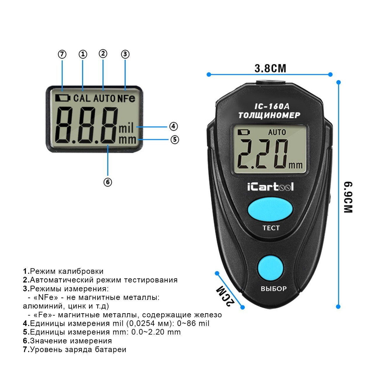 Толщиномер лакокрасочных покрытий iCartool IC-160A интересное: