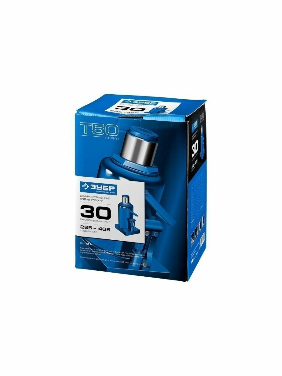 ЗУБР 30т, 285-465 мм, Бутылочный гидравлический домкрат, Профессионал (43060-30)