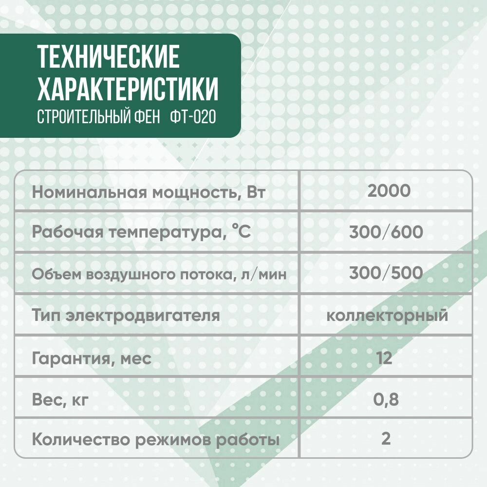 Фен строительный Дифмаш, ФТ-020, 2000 Вт, 500, 300 °C, 600