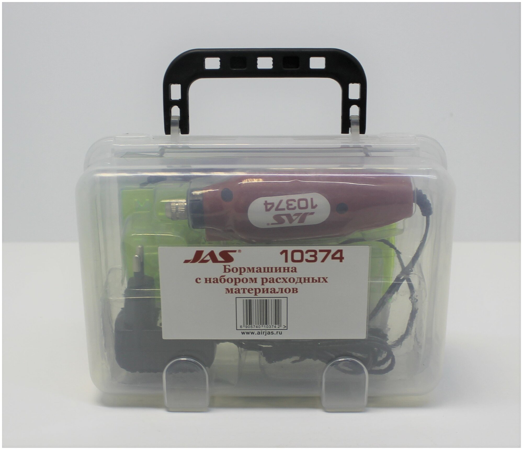 10374 JAS Бормашина, 12 В, 12500 об/мин., принадлежности 15 предметов, пластиковый короб.