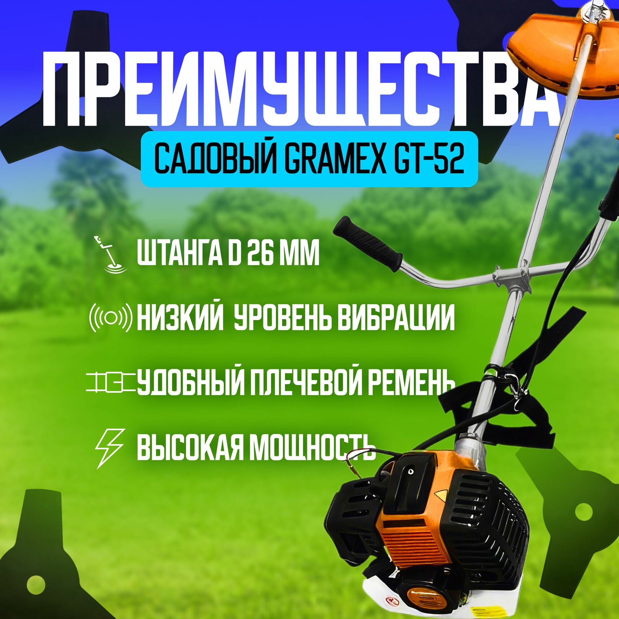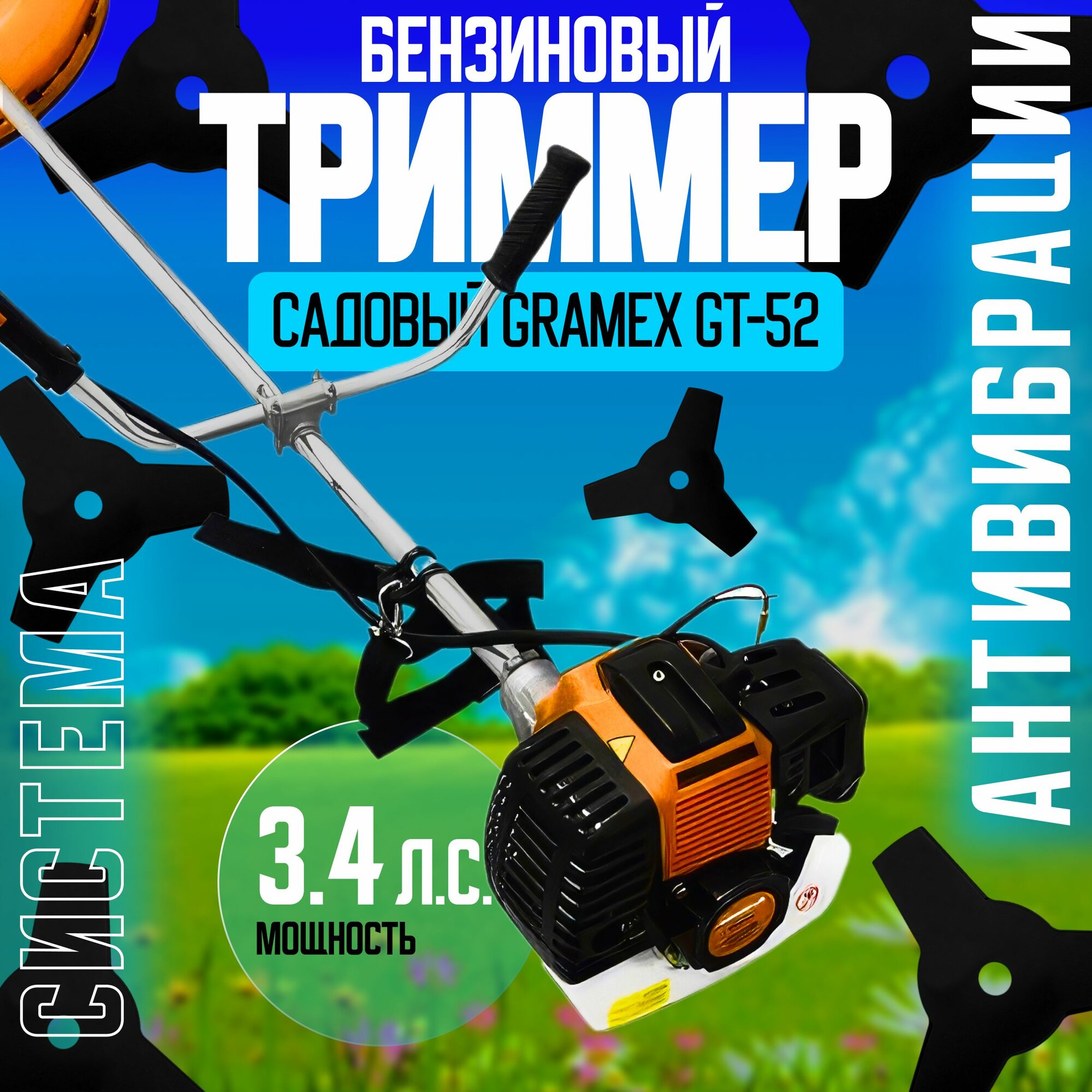 Ниже Вы можете прочитать отзывы на Бензиновый триммер Gramex GT-52, ознакомится с подробными характеристиками, посмотреть интересные обзоры и фотографии на Бензиновый триммер Gramex GT-52.