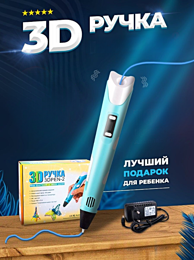 Купить 3Д Ручка детская 3DPEN-2, 3D ручка для творчества 2-го поколения, Набор для творчества, Голубой