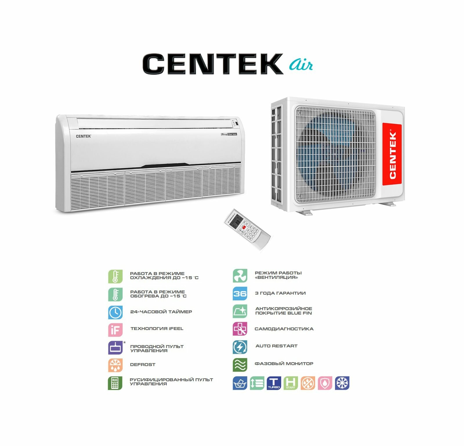 Сплит-система полупромышленная Centek CT-66A36 напольно-потолочного типа (комплект) интересное: