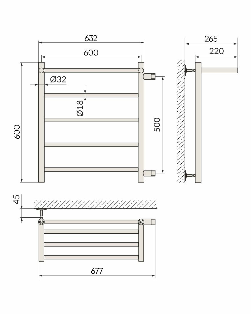 СохранитьПолотенцесушитель водяной INDIGO Line с полкой 60/60 межосевое расстояние 50 боковое подключение справа, Полированный интересное:
