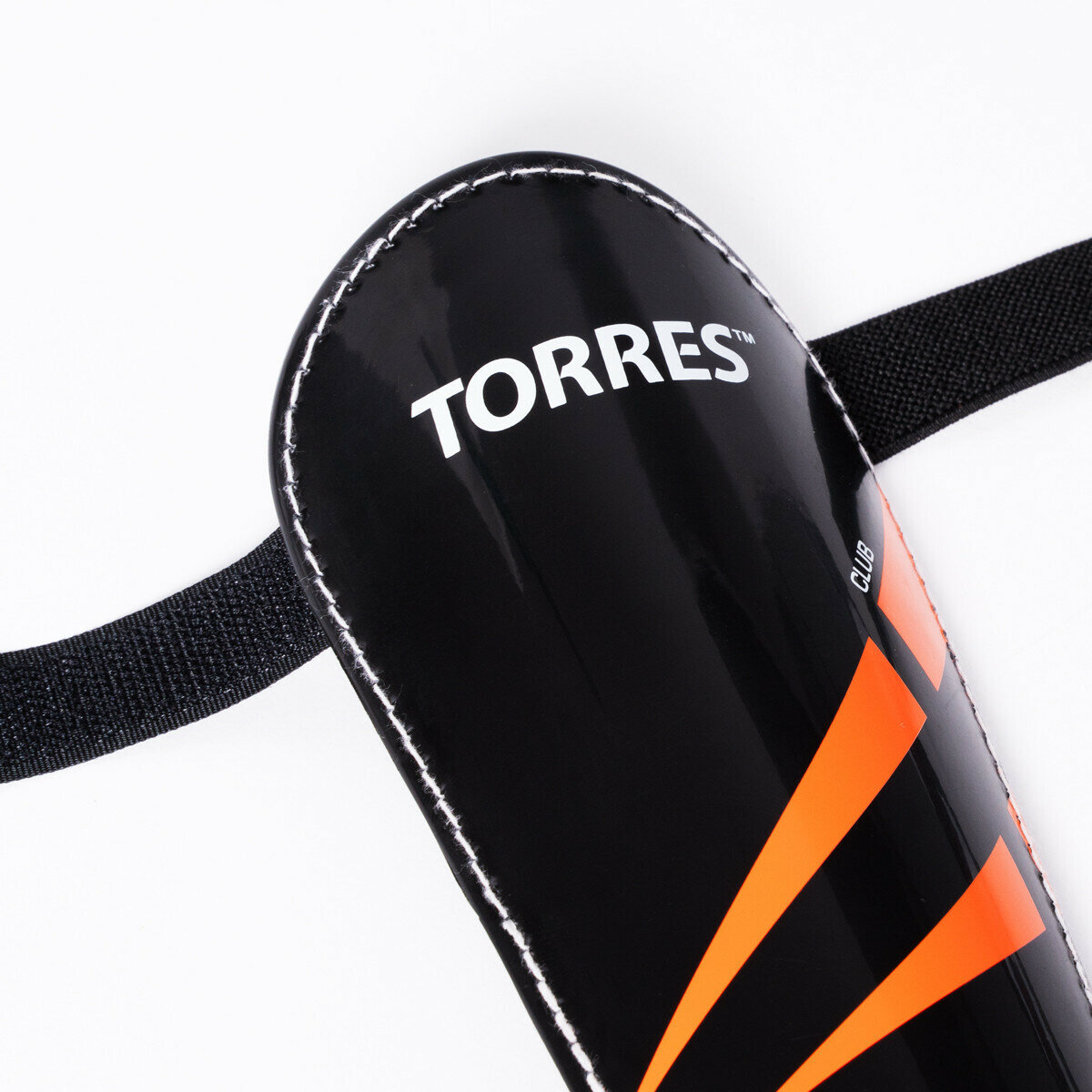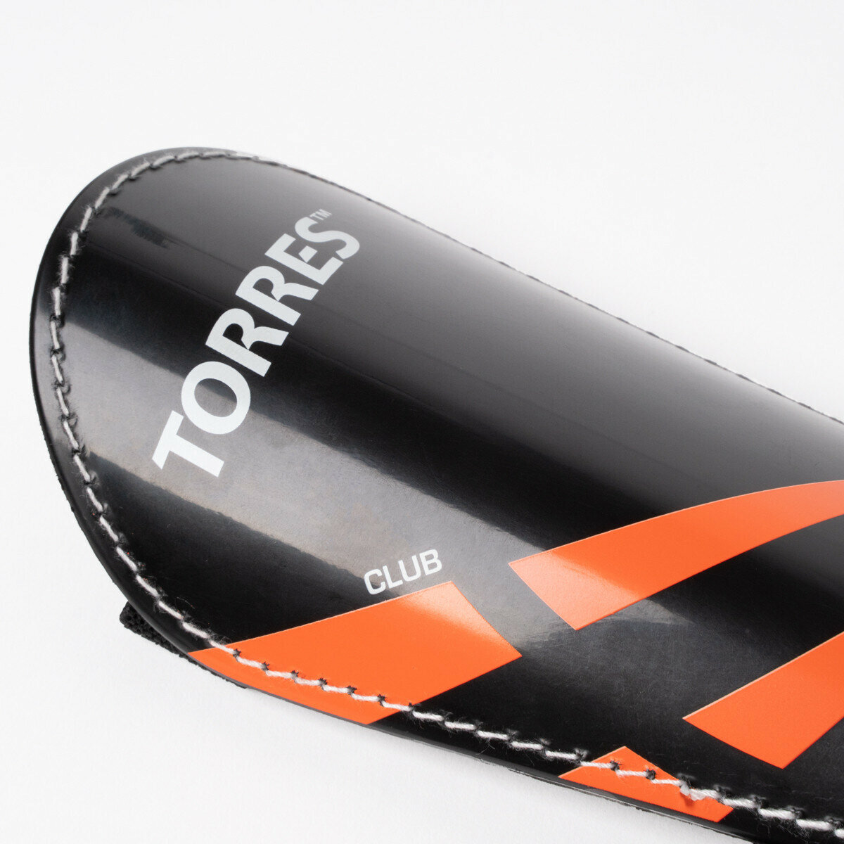 Купить Щитки футбольные Torres Club FS1607XS, размер XS, без голеностопа, две заст. на лип, черно-оранж-белый