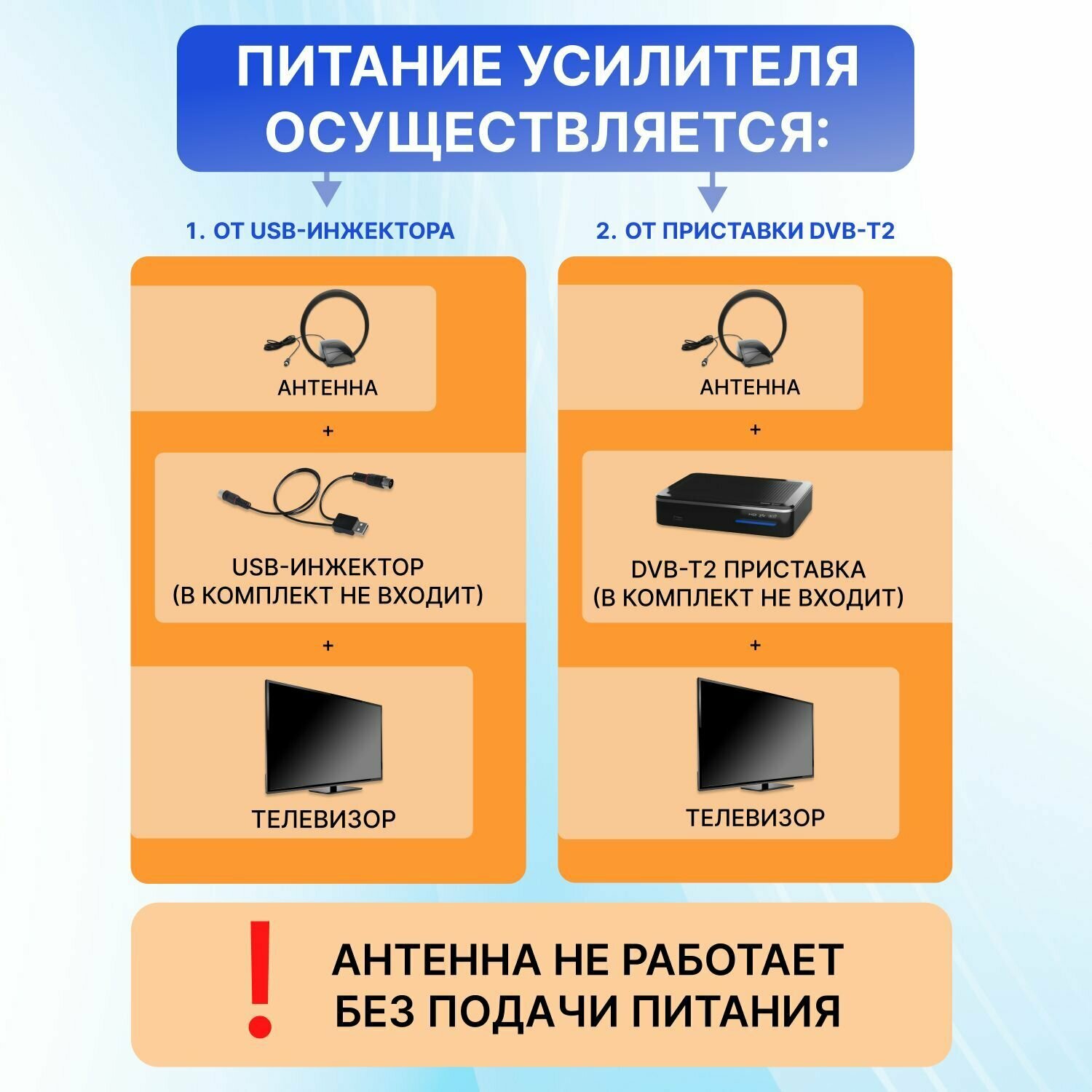 Антенна комнатная активная REXANT для цифрового телевидения DVB-T2 с встроенным усилителем