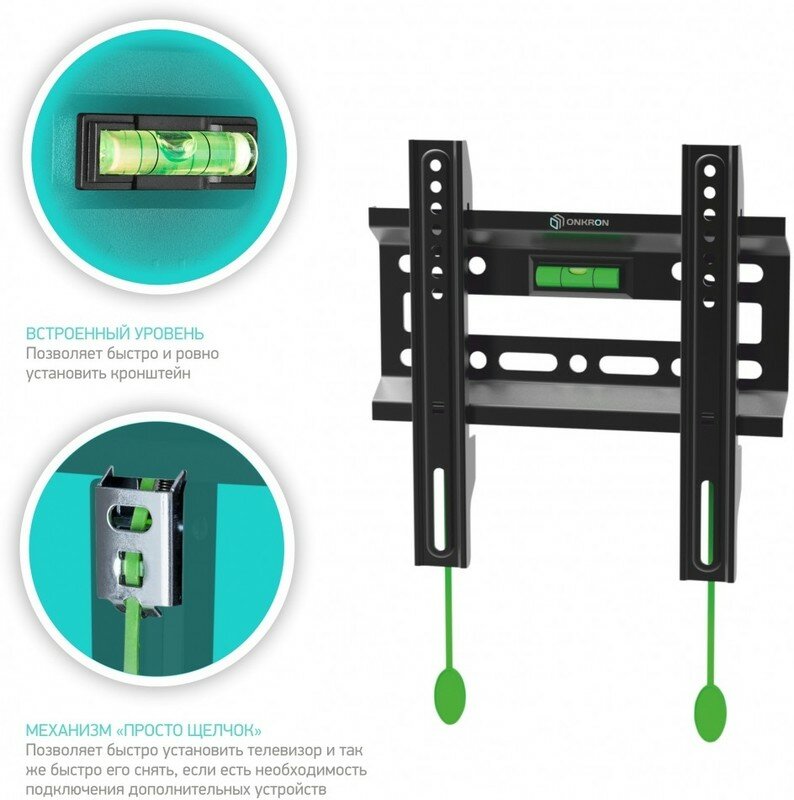 Кронштейн ONKRON/ 17-43" макс. 200*200, наклон 0º, поворот 0º, от стены 30мм, вес до 30кг, черный
