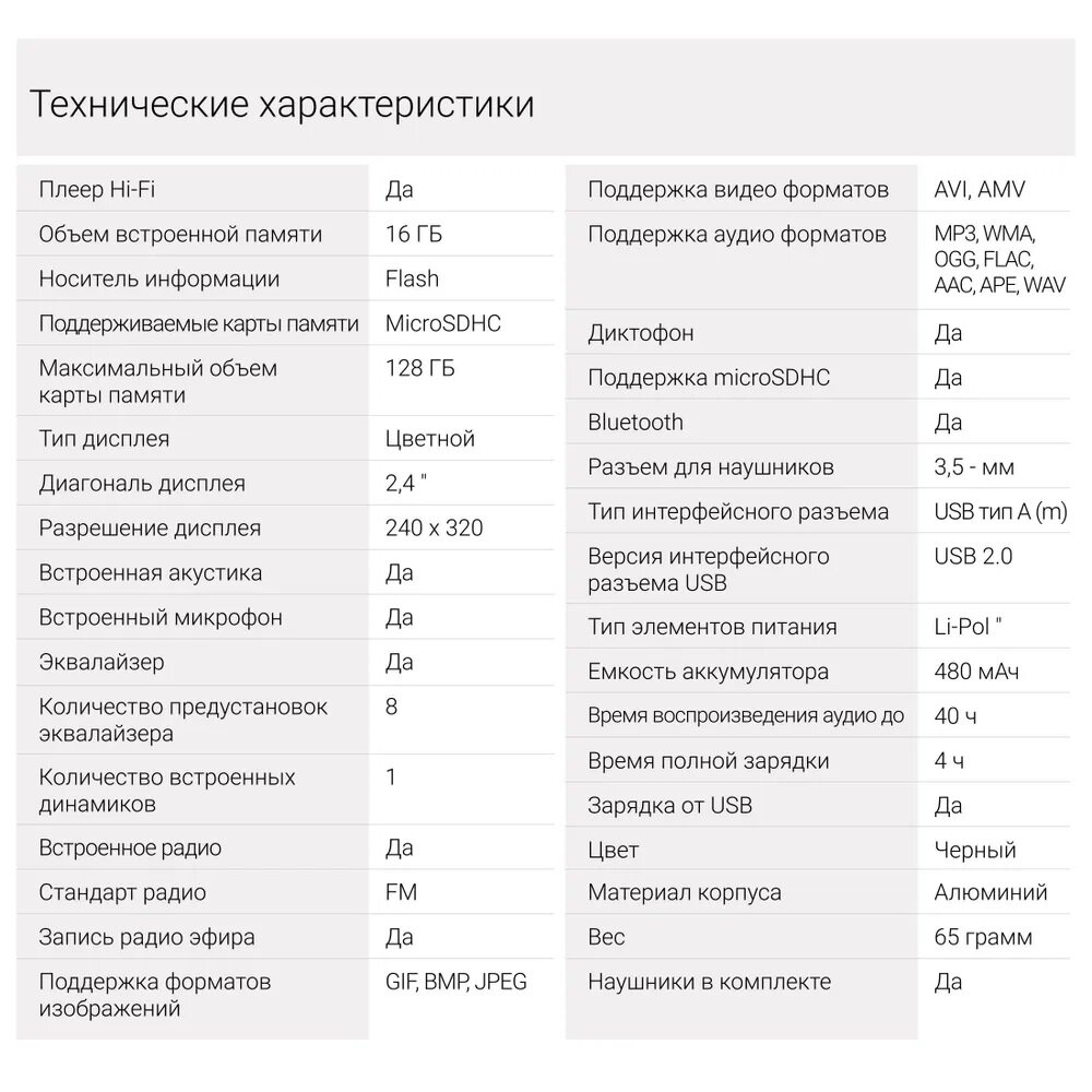 2. Солидный вид. По дизайну красивый и стильный, ничего лишнего. Задняя часть корпуса из металла. Тяжёленький, но приятно лежит в руке. 3. Слот MicroSD. Тянет полностью забитую музыкой флэшку на 64ГБ без тормозов и глюков. + Его память на 16ГБ. В итоге имеем хороший плеер почти на 80ГБ. Это, пожалуй, самый главный плюс. 4. Аккумулятор - бомба! Тот случай, когда плеер "строили" вокруг аккумулятора). Тянет на полную заявленную катушку. Если по проводным наушникам - слово "зарядить" забудете на 3-4 дня. Производитель здесь точно не обманул. По блютузу - 5 часов. Пыжится, греется, но вытягивает и это время. 5. Bluetooth - это хорошо, но уже как чудо, не воспринимается. Синхронка работает чётко, проблем не было что с BT-колонкой, что с BT-ушками. Главный плюс всего этого - в дальней поездке, экономит заряд смартфона. 6. Удобство управления, не вынимая из кармана. Кнопки в меру тугие, сам не переключится точно. К интуитивному нажатию на нужную кнопку - привыкнуть пару часов. 7. Воспроизведение треков вне зависимости от зарядки и навигации по папкам. |