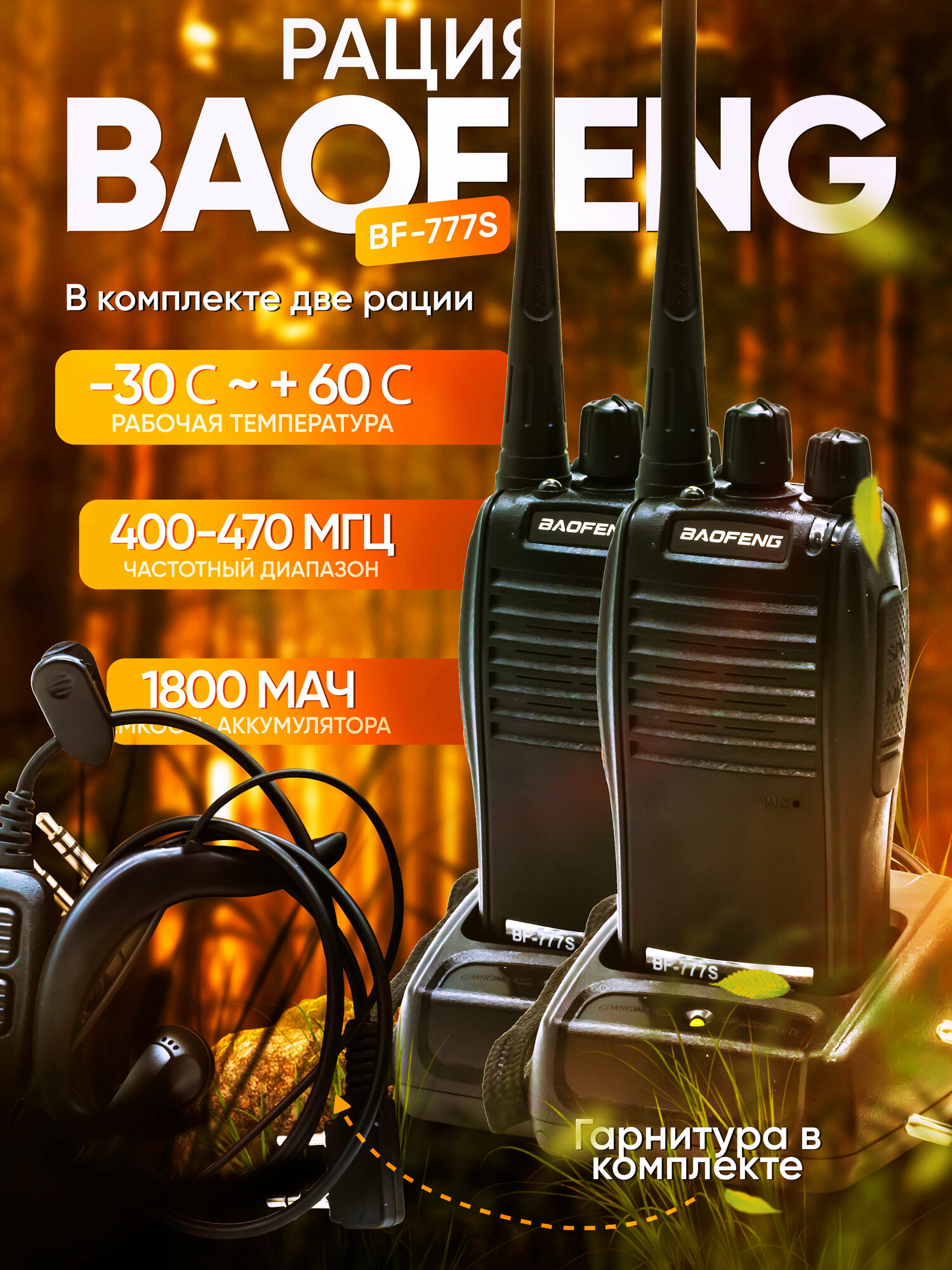 Рация Baofeng BF-777S (5W/ 400-470mhz/ 1500mh) с гарнитурой