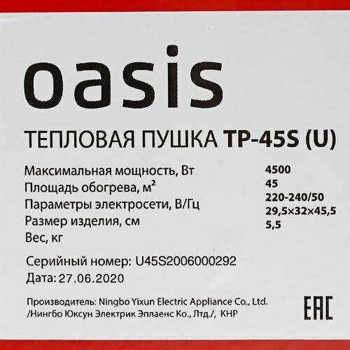 Oasis Тепловая пушка Tp-45s /U/ 4640039486220 .