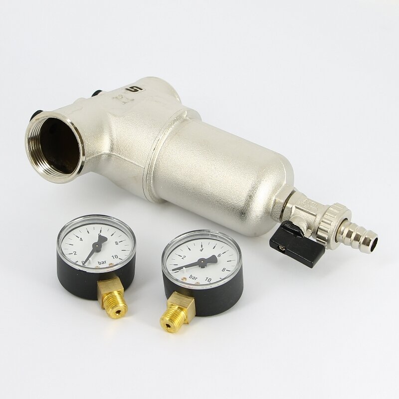 Фильтр магистральный промывной UNI-FITT 1" с двумя манометрами и сливным шаровым краном интересное: