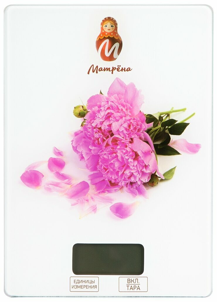 Весы кухон. эл. Матрена МА-037 (Пионы) до 7кг, дел 1гр, 15*21см (2*ААА в компл) 7158