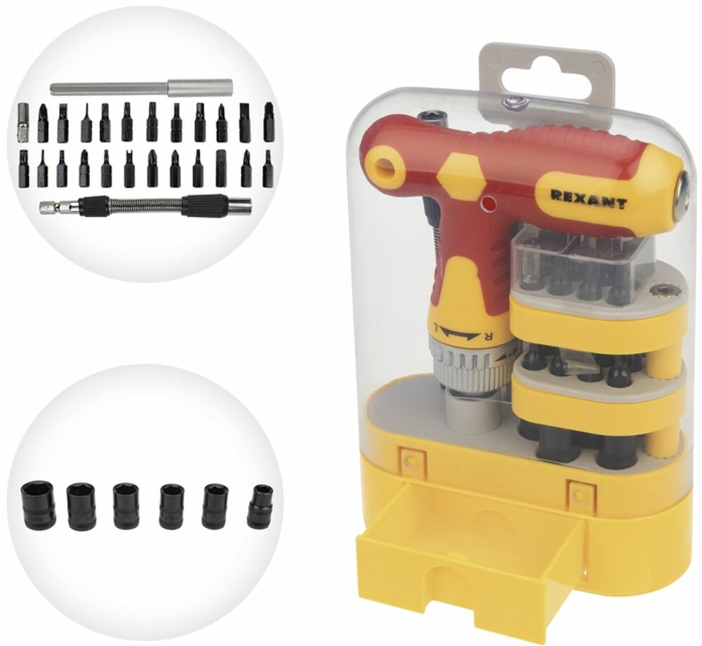 Rexant Отвертка реверсивная CrV биты/головки М6-М11 с удлинителем 33 предм Rexant