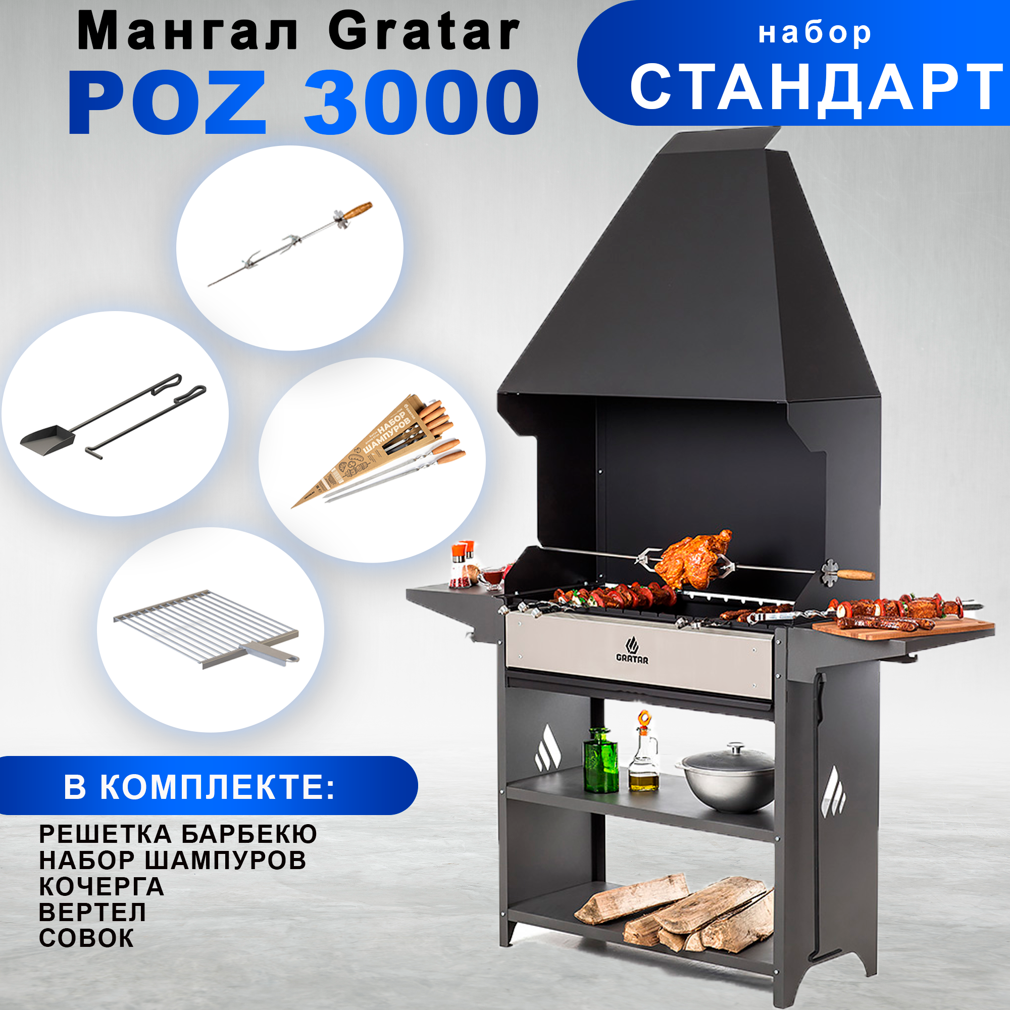 Мангал с вытяжкой Gratar Professional Optima Zont с набором аксессуаров "Стандарт" интересное: