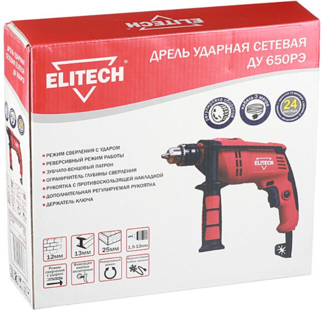 Ниже Вы можете прочитать отзывы на Дрель ударная Elitech ДУ 650РЭ 650Вт патрон:кулачковый реверс (181180), ознакомится с подробными характеристиками, посмотреть интересные обзоры и фотографии на Дрель ударная Elitech ДУ 650РЭ 650Вт патрон:кулачковый реверс (181180).