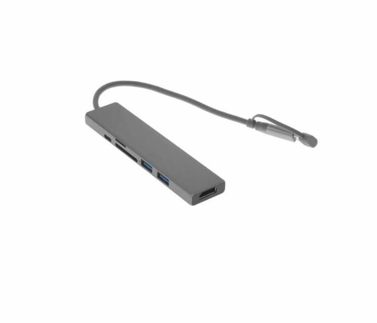 Док-станция Qumo Dock 7 (HB-0008), Type-C, PD, HDMI, 4k 30Hz, 1080p 60 Hz, GE1000 MBS, 4 USB 3.0, 20 cm, SD, Micro SD, металлический корпус, темно-серый