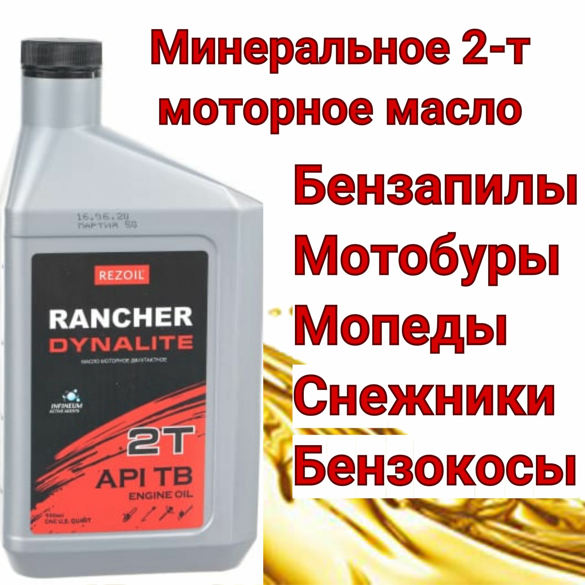 Масло для 2-х тактных двигателей (бензокосы, бензопилы и пр.) минеральное REZOIL Rancher DYNALITE API ТВ, 0.946 л.