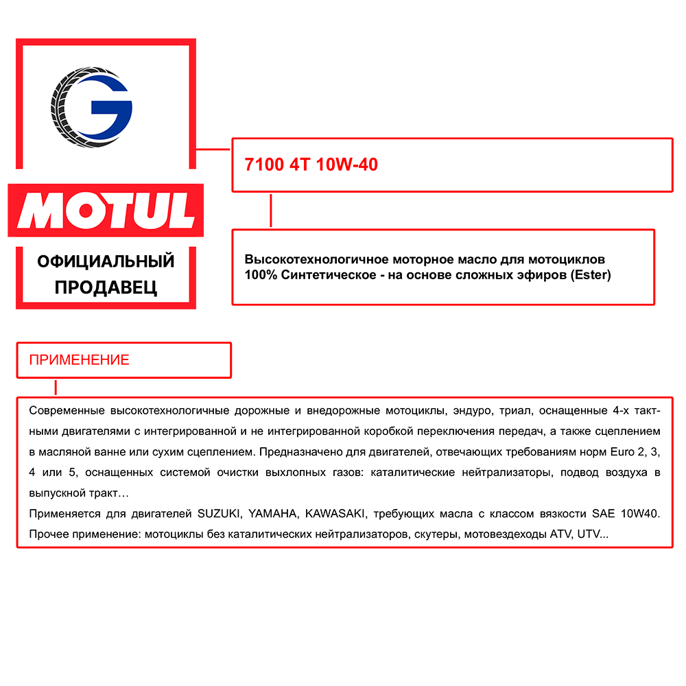 7100 4T 10W40 масло моторное синт. 1л. Motul 104091 (104202)