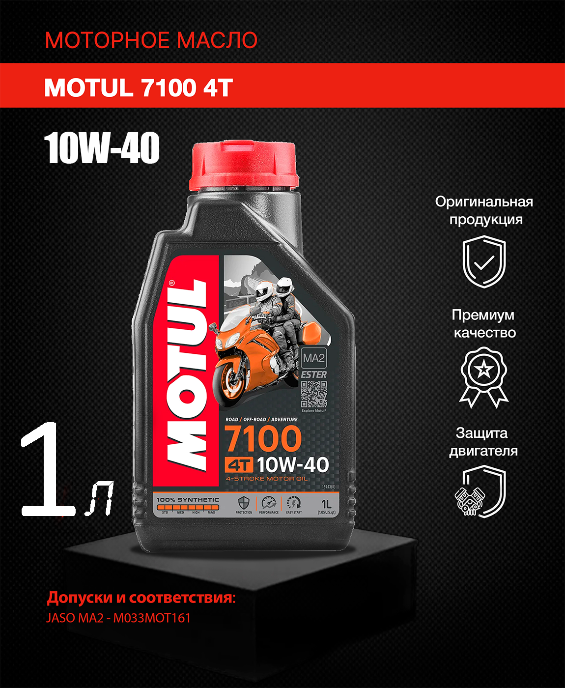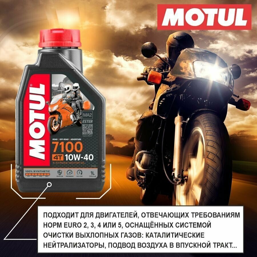 Масло для мотоциклов MOTUL 7100 10w40 синтетическое, API SN, JASO MA2, 4-тактное, 1л, арт. 104091