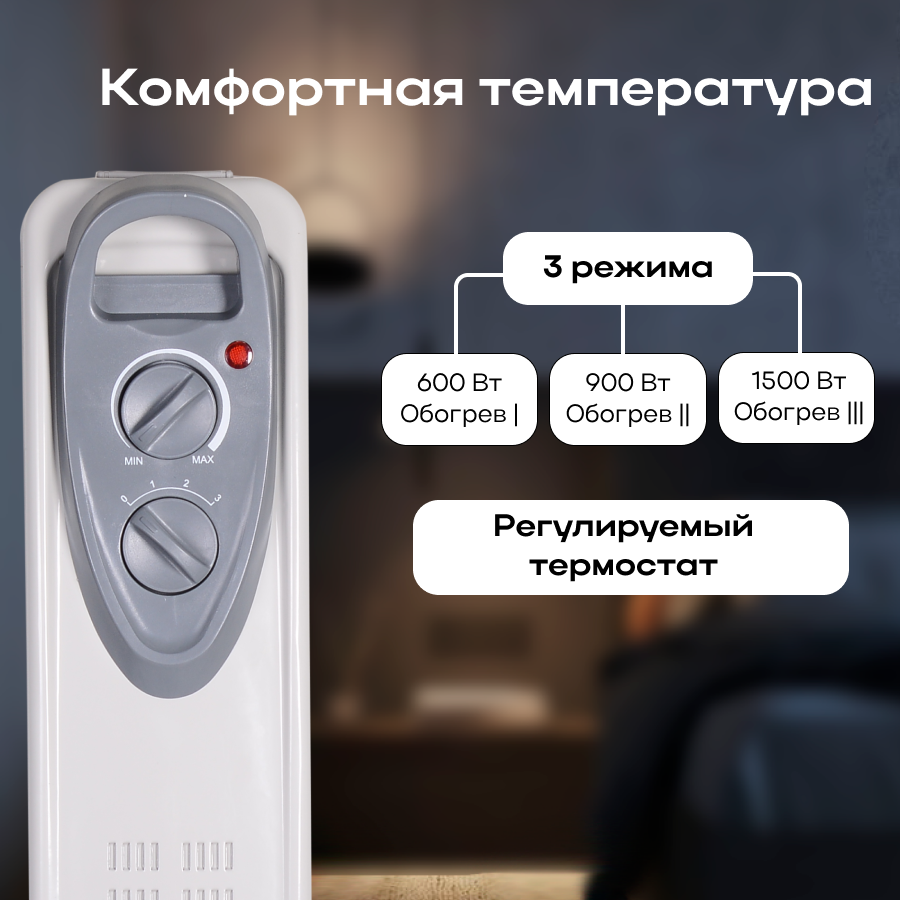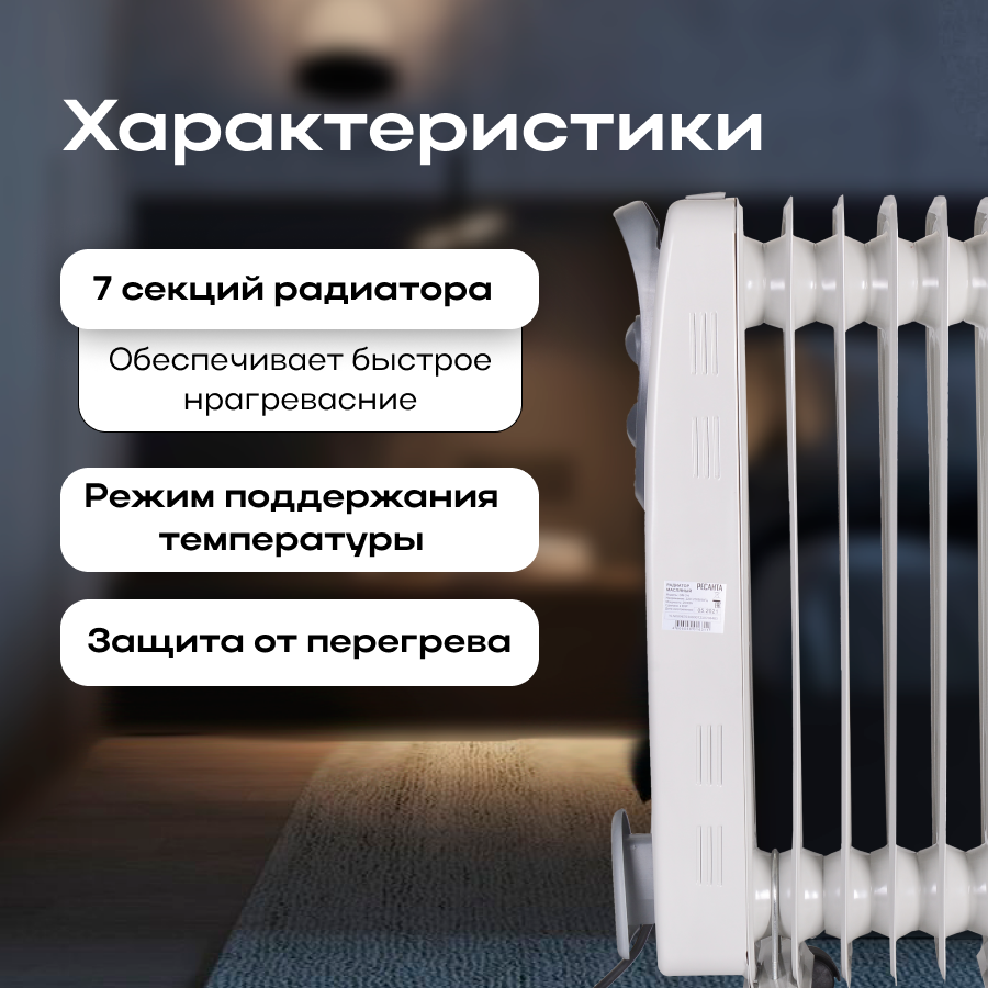 Радиатор масляный Ресанта ОМ-7Н, 1500Вт, белый интересное: