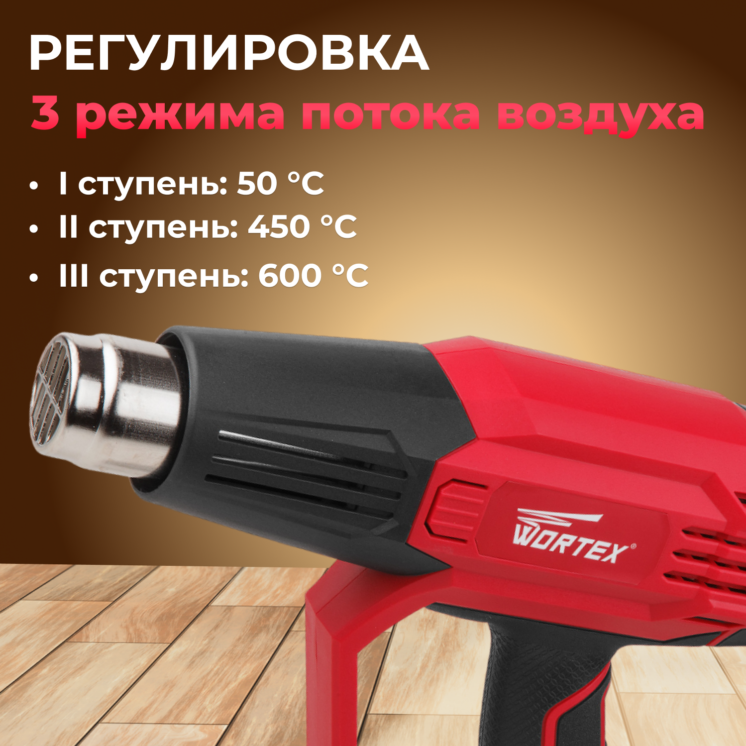 СохранитьТермовоздуходувка WORTEX HG 6222 в кор. + набор сопл 2000 Вт, 3 скор., 90-600 °С (плавн. рег., 250-500 л/мин) (HG622200011) интересное: