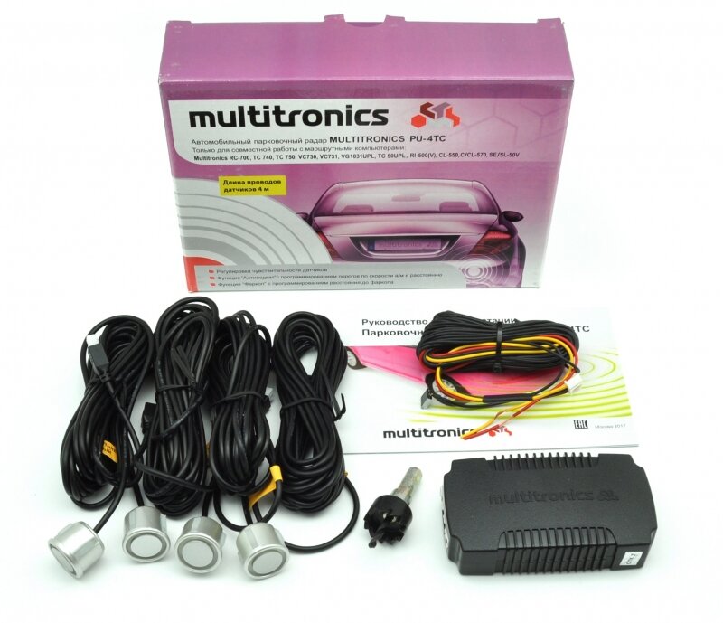Парктроник Multitronic PU-4TC для бортовых компьютеров С-900, MPC-800, TC 750 / TC 740, VC731 / VC730, RC-700, CL-550, C-570 / CL-570, C-590 / CL-590, VG1031UPL, TC 50UPL / GPL, RI-500 / RIF-500 , RI-500V, SE-50V / SL-50V., 4 датчика серого цвета интересное: