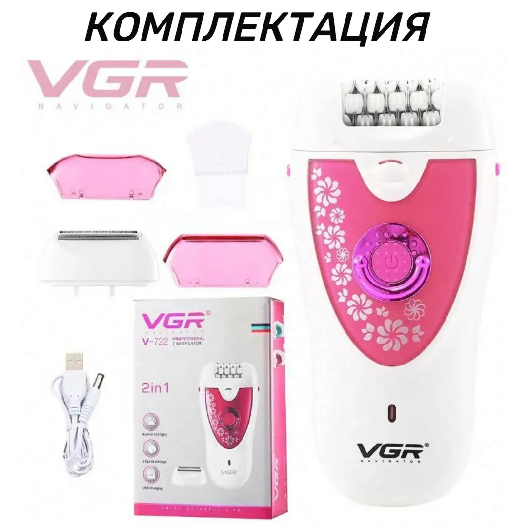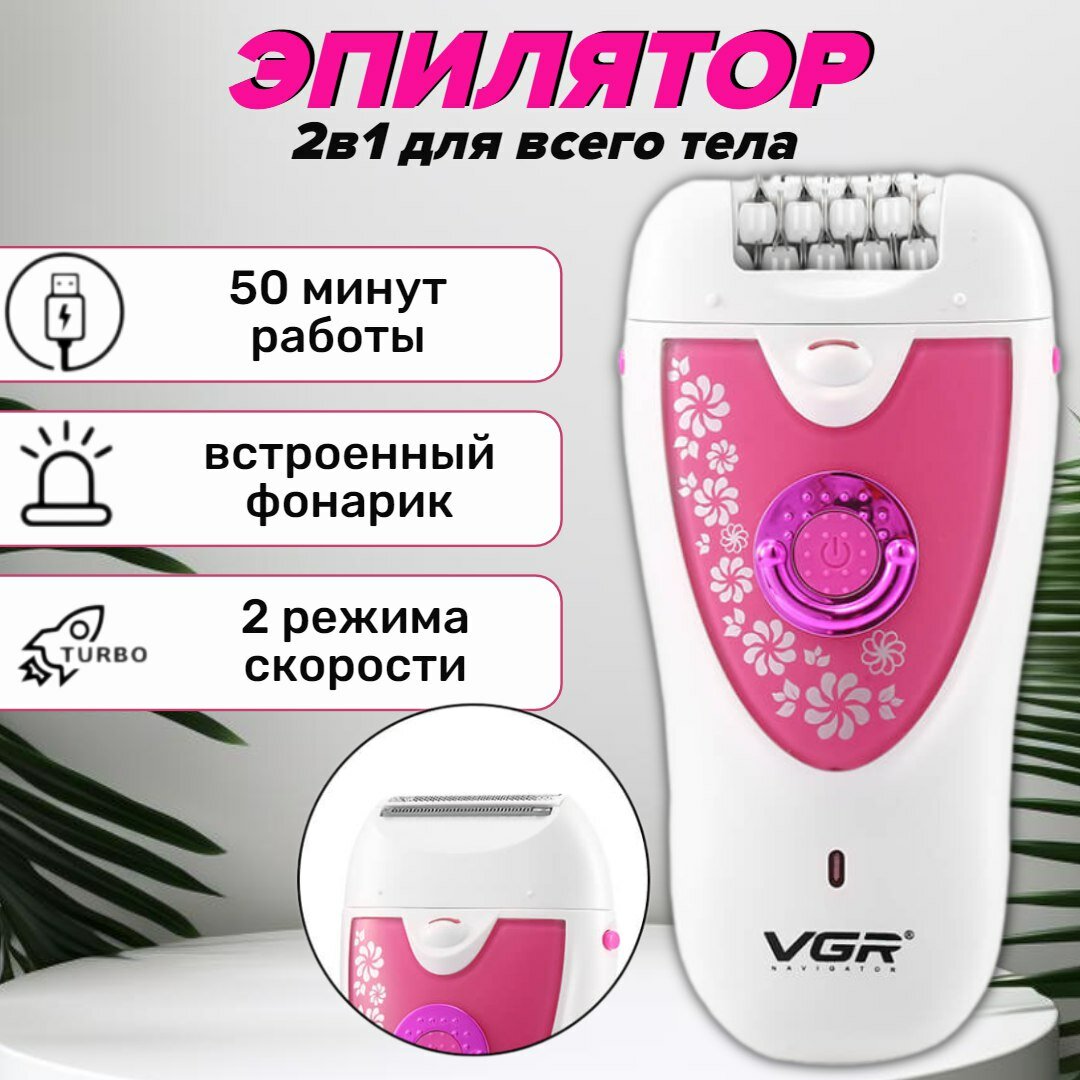 Эпилятор Женский / Беспроводной эпилятор 2в1 VGR V-722 (на аккумуляторе) / Розовый.