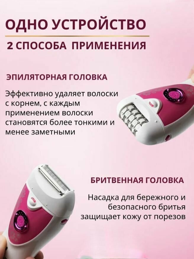 Эпилятор Женский / Беспроводной эпилятор 2в1 VGR V-722 (на аккумуляторе) / Розовый.