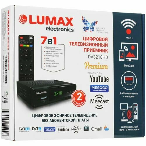 Lumax Ресивер LUMAX DV-3218 HD (DVB-T2, DVB-C, Wi-Fi, обуч. пульт)