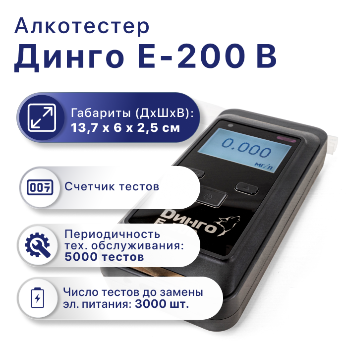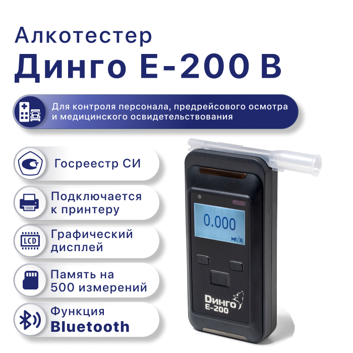 Алкотестер Динго/ Dingo Е-200 (В) с поверкой c функцией Bluetooth интересное:
