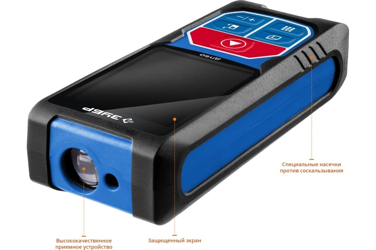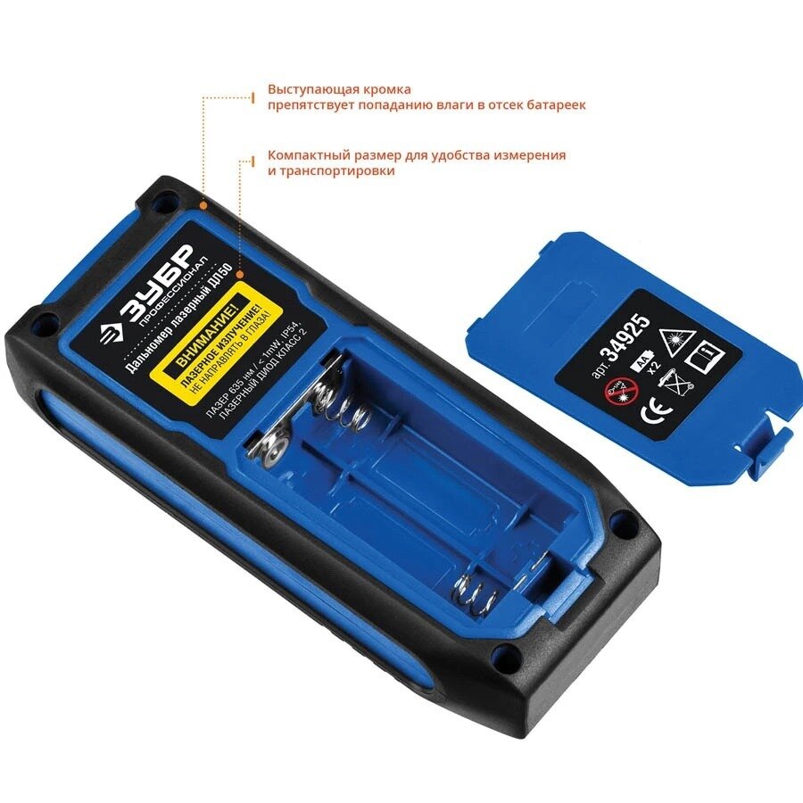 Купить Дальномер лазерный ДЛ-50, точность 2 мм, дальность 50м, класс защиты IP54, ЗУБР Профессионал 34925.