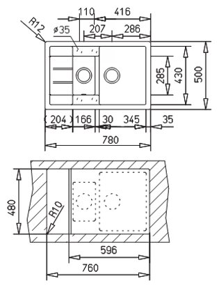 Врезная кухонная мойка LEX Maury 510