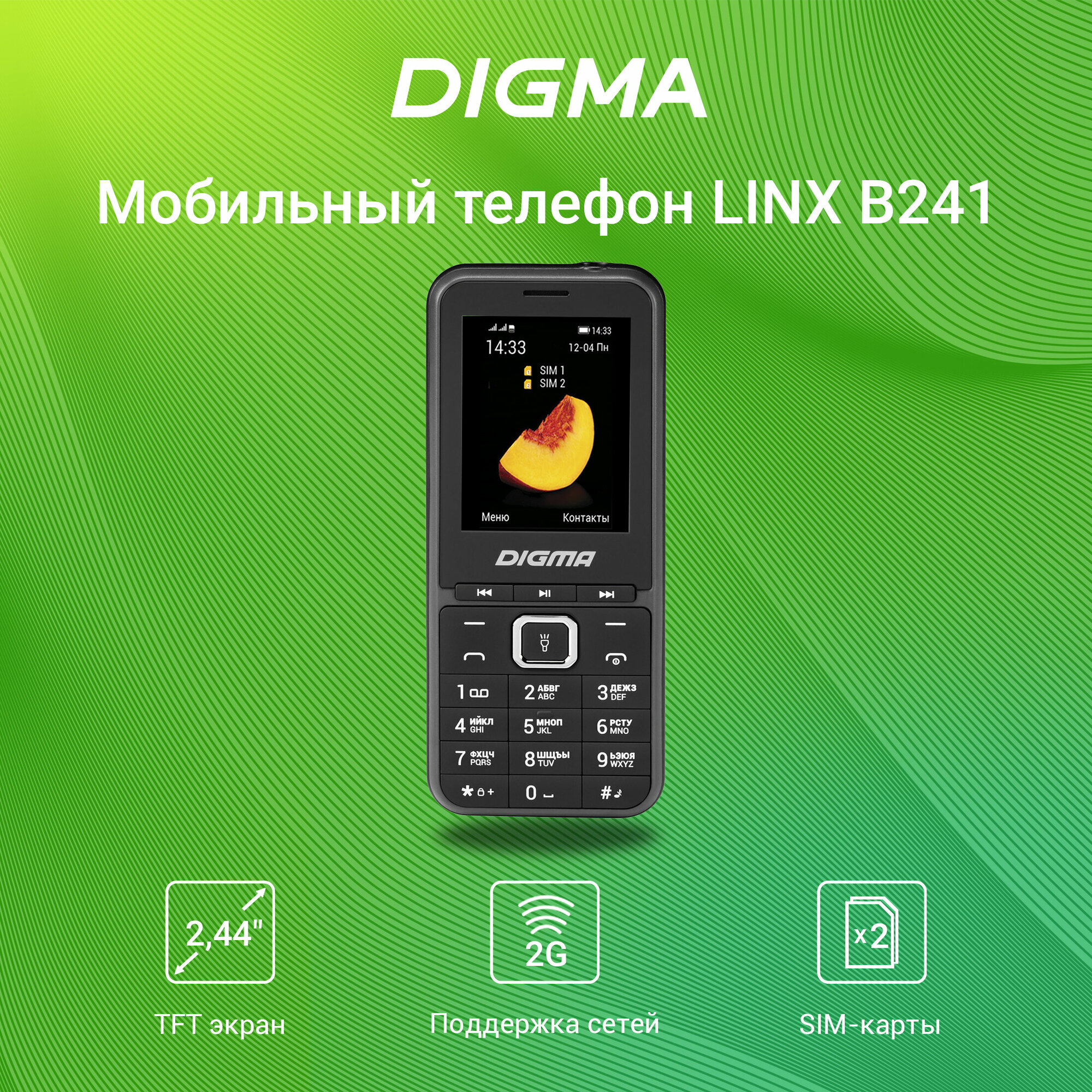 Телефон DIGMA LINX B241, 2 SIM, черный