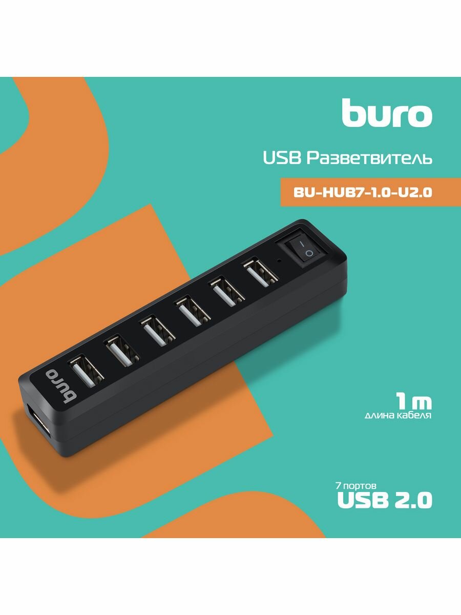 Разветвитель USB 2.0 Buro BU-HUB7-1.0-U2.0 7порт. черный BU-HUB7-1.0-U2.0