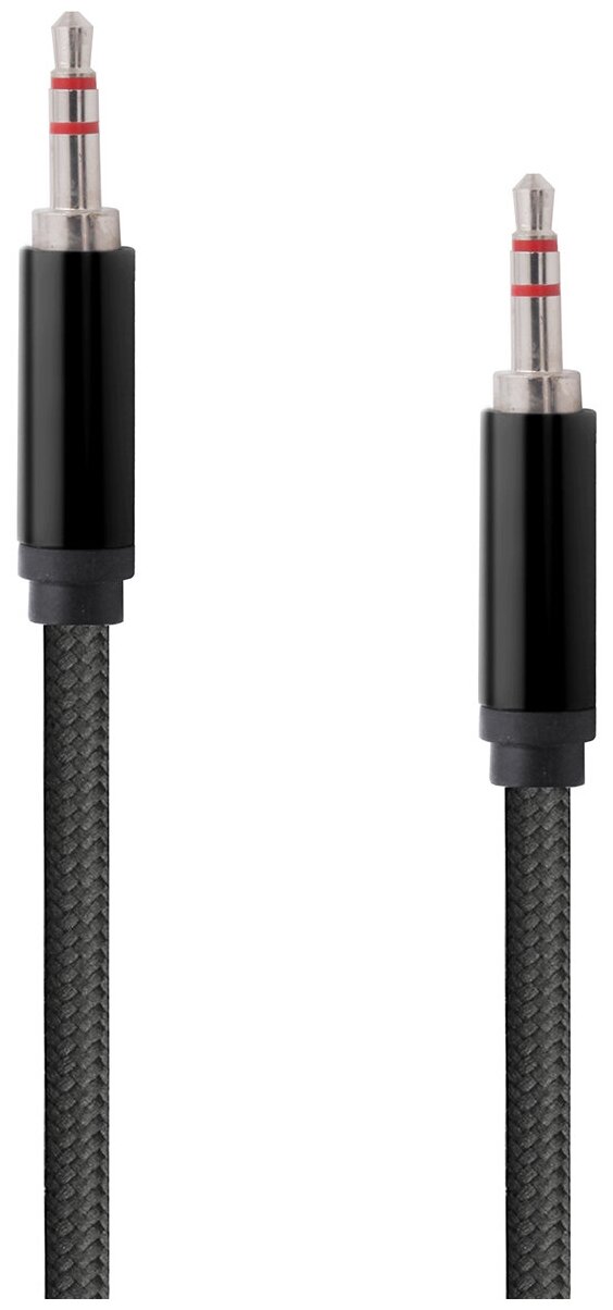 Кабель AUX 3.5mm в тканевой оплетке WALKER WCA-520, mini jack, двусторонний, 3м, прямой штекер, черный / акустический шнур на телефон, аудио автомобиль