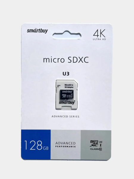 Сохранитьmicro SDXC карта памяти Smartbuy 128GB U3 V30 A1 Advanced R/W up to 90/55 с адапт. (SB128GBSDU1A-AD) интересное: