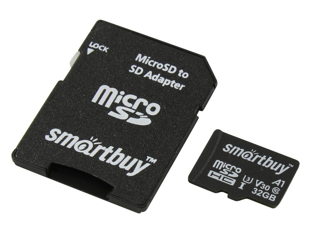 Карта памяти SmartBuy microSDHC 32 ГБ Class 10, UHS-I U3, R/W 90/55 МБ/с, адаптер на SD, 1 шт.