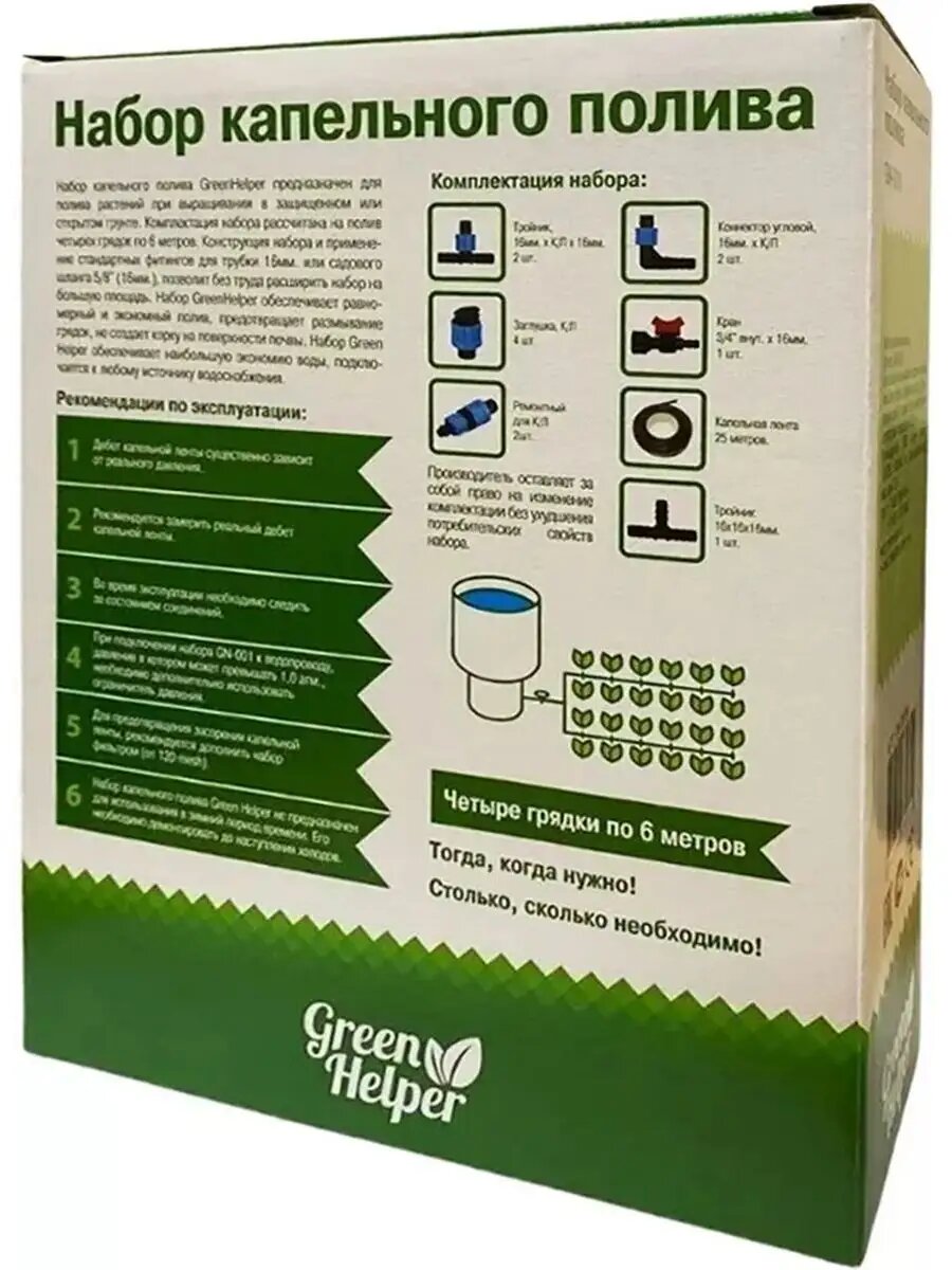 Набор капельного полива для теплиц и открытого грунта 4 грядки по 6 м GREEN HELPER GN-001N