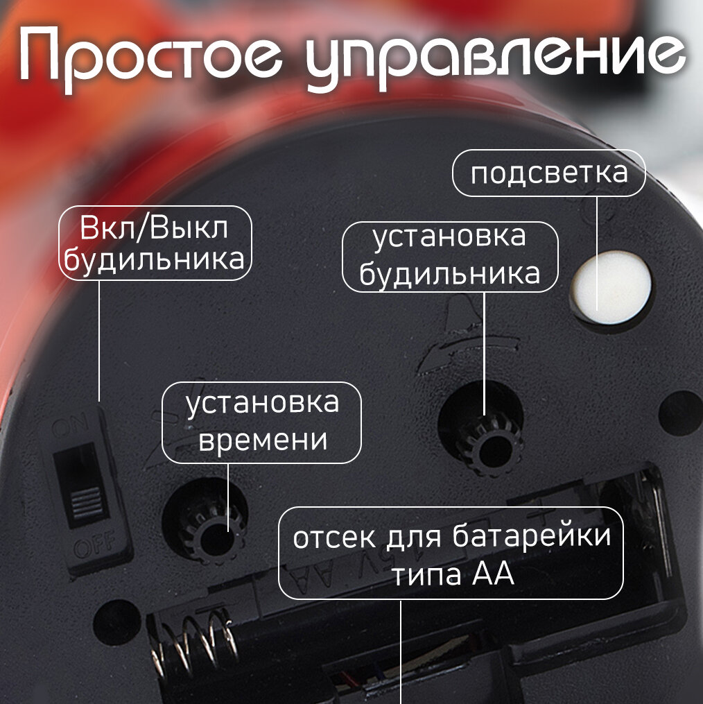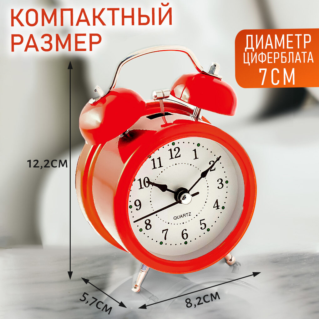 Купить Часы будильник настольные D-7 см красный цвет / подарок мужчине на 23 февраля, женщине на 8 марта, ребенку, мальчику, сыну, девочке, дочке